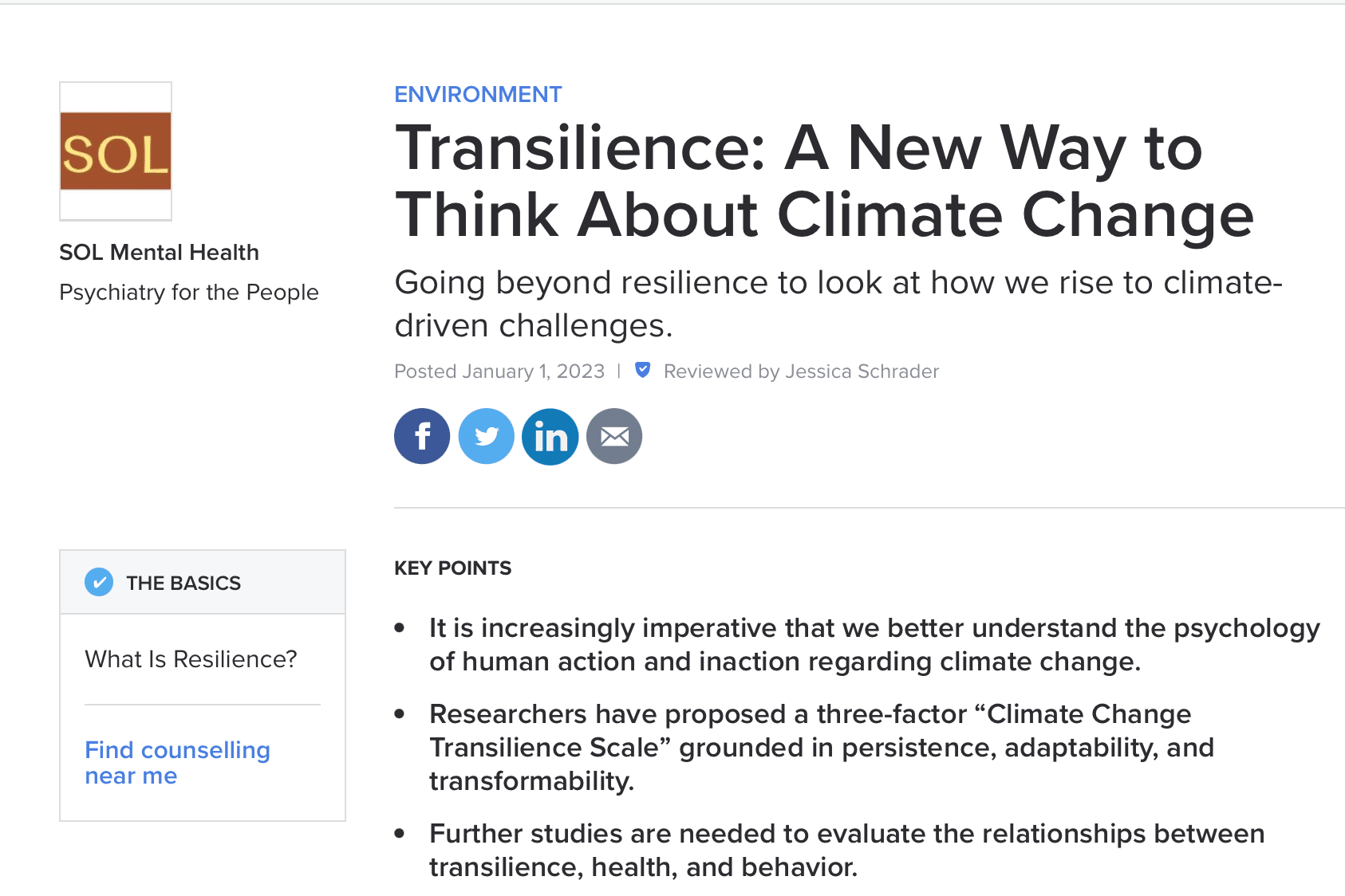 Psychology Today: Transilience: A New Way to Think About Climate Change