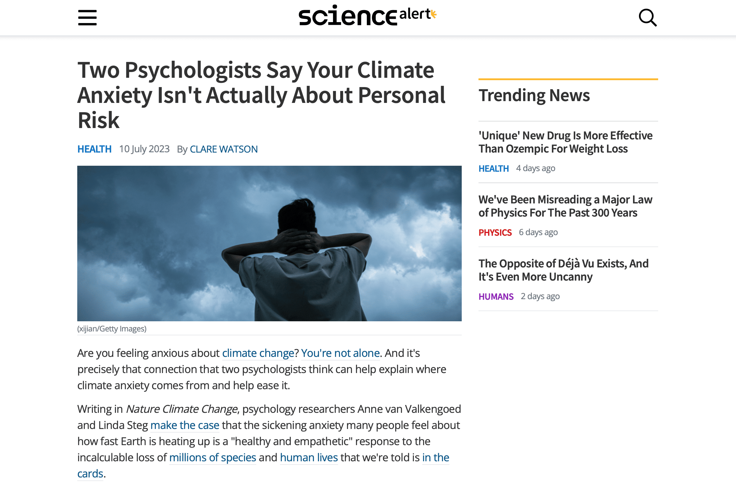 ScienceAlert: Two Psychologists Say Your Climate Anxiety Isn't Actually About Personal Risk